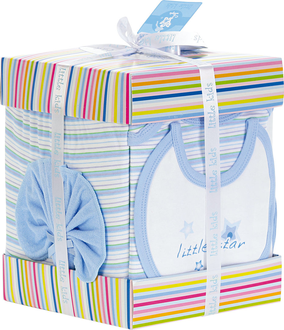 Inclui: Gorro, 2 babetes, 3 toalhitas, 1 body, camisola, Luvas e cueca tapa fralda.